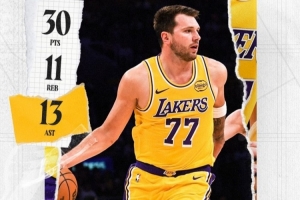 湖人官方晒东契奇数据海报:三双外加绝杀!今晚属于你!🌟