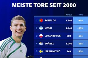 2000年后进球前十球员:C罗梅西前二断层领先,莱万苏牙伊布前五