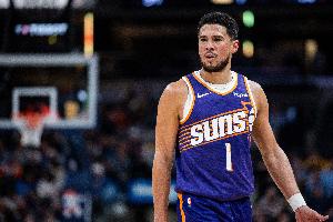 布克本场比赛出场34分58秒,27投11中(三分7中1),罚球14中11,拿到34分6篮板3助攻,正负值-3。