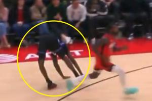 GIF-伊森反击的时候撞到了小文斯·威廉姆斯没有吹罚,后者被夹着抬回更衣室!