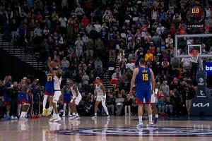 快船与掘金比赛最后时刻,落后3分的掘金获得压哨三分。