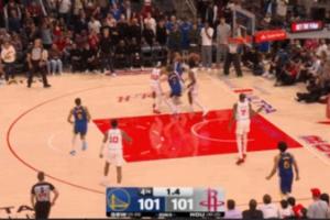 GIF-火箭只剩0.3秒进攻时间,空接直接过桥了,比赛进入加时!