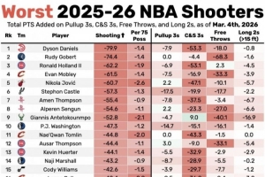 本赛季最不准30人:申京追梦字母哥上榜 莫布里戈贝尔梅尔顿在列