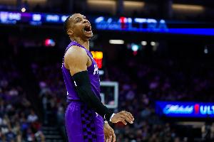 此役,威斯布鲁克出战34分43秒,17中7,其中三分5中3,罚球6中6,得到23分11篮板12助攻1抢断,没有失误,正负值+10。